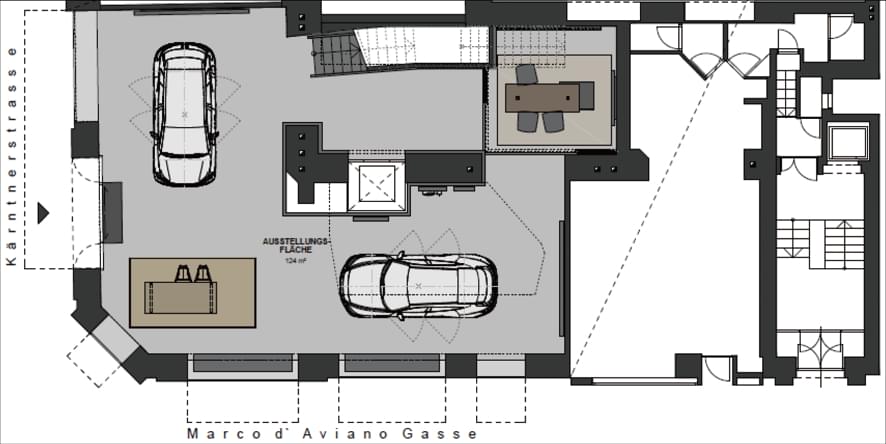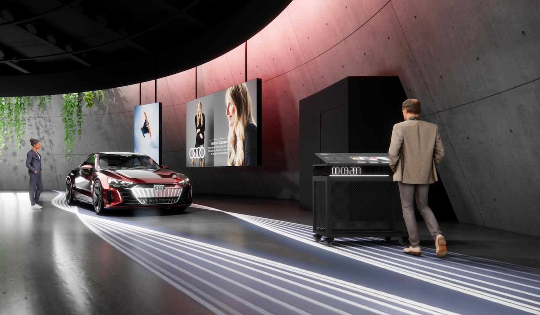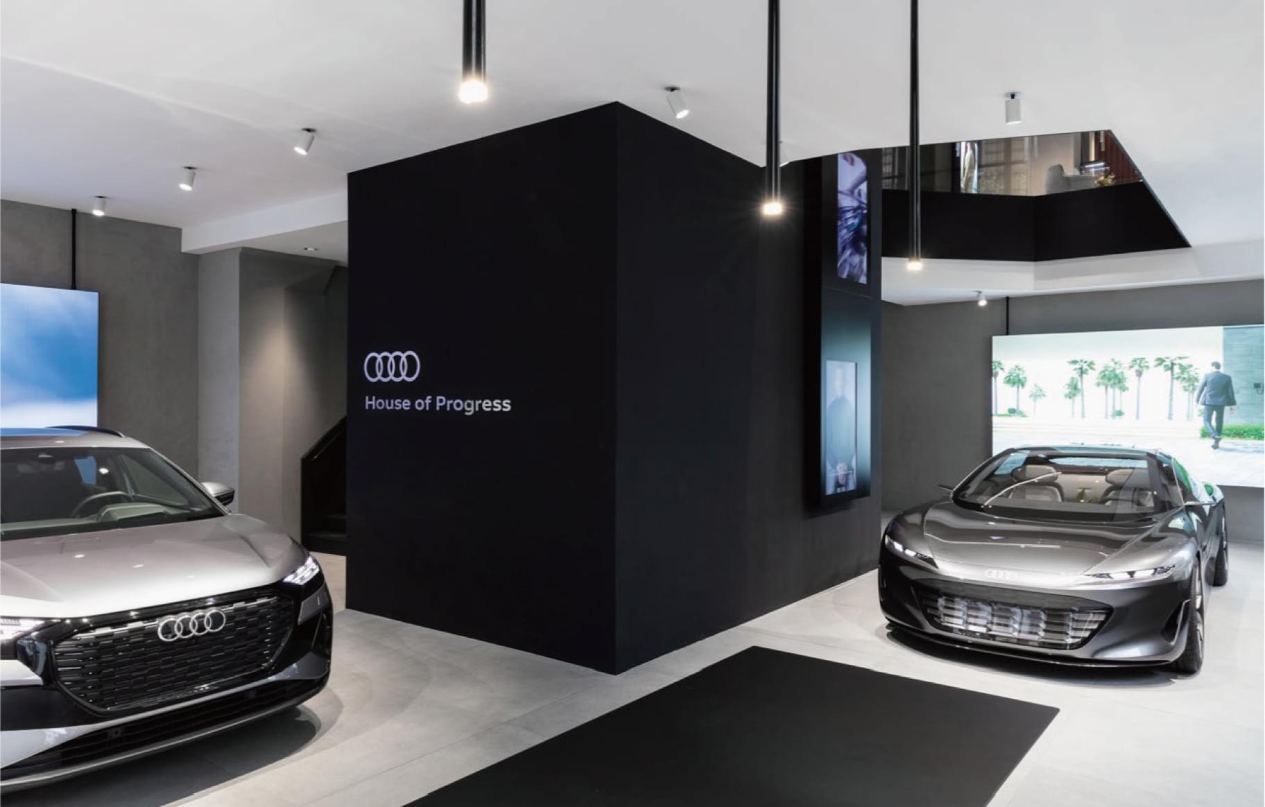 橱窗模块用来展示与奥迪品牌的创新精神和可持续性愿景相关的话题和丰富主题。这些话题及主题已经融入了清晰、精致的建筑环境中。橱窗还为重点车型的展示提供了空间。