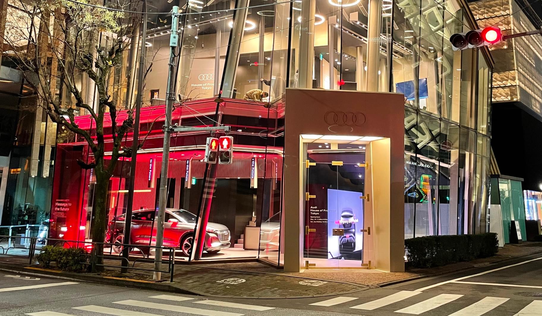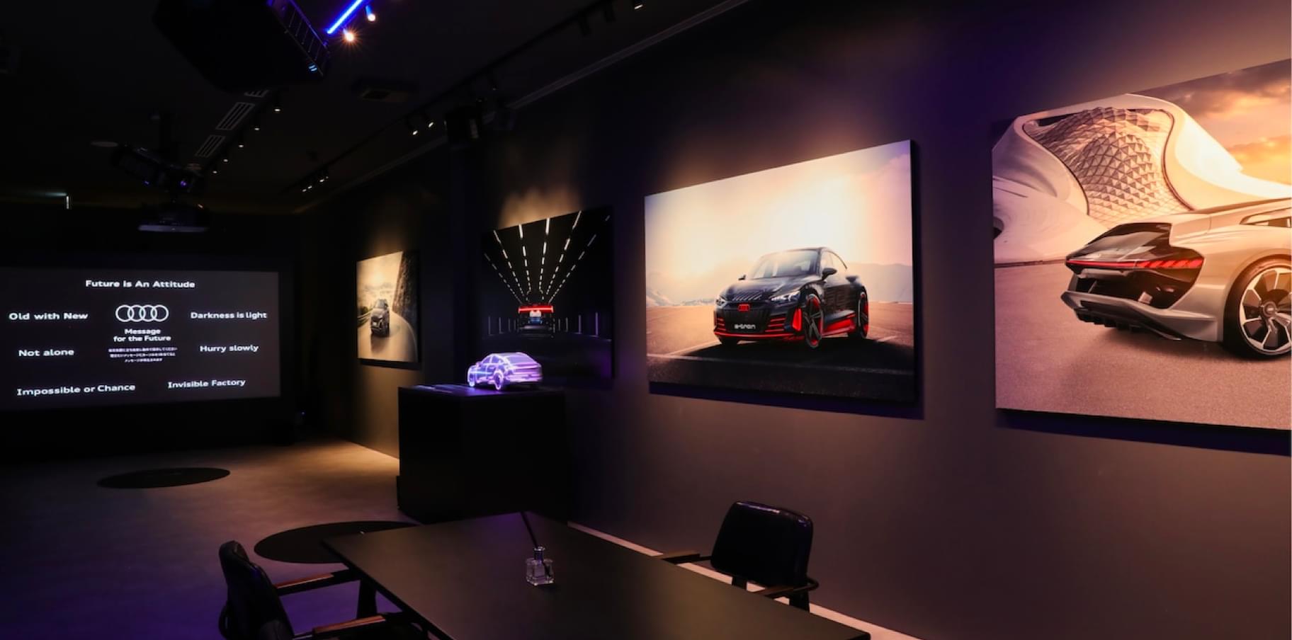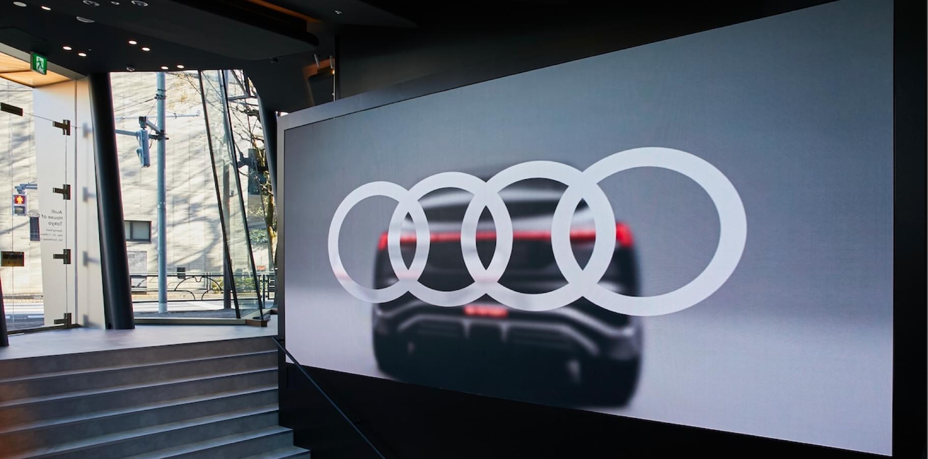 在前卫的建筑中,全方位深入体验奥迪品牌:在东京青山的设计区,一个临时的品牌空间正在创建中,参观者可以体验到“与进取同行”。