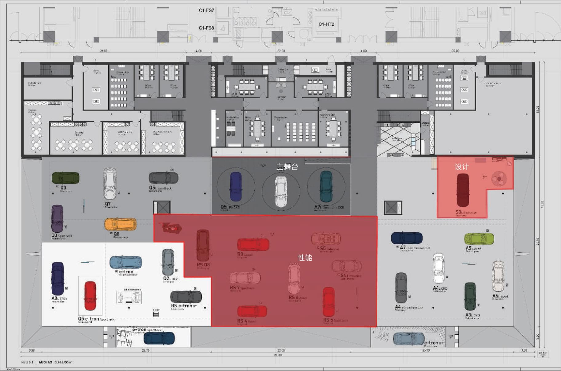 2. “性能”品牌区,采用红色照明和红色背景墙