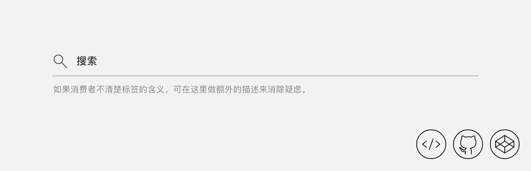 在搜索栏中,包含一个搜索图标与一个标签。与一般的文本栏不同,标签在输入时被覆盖,并且不会向上移动。在输入几个字符后,可以出现一个带有自动建议项目的下拉菜单。