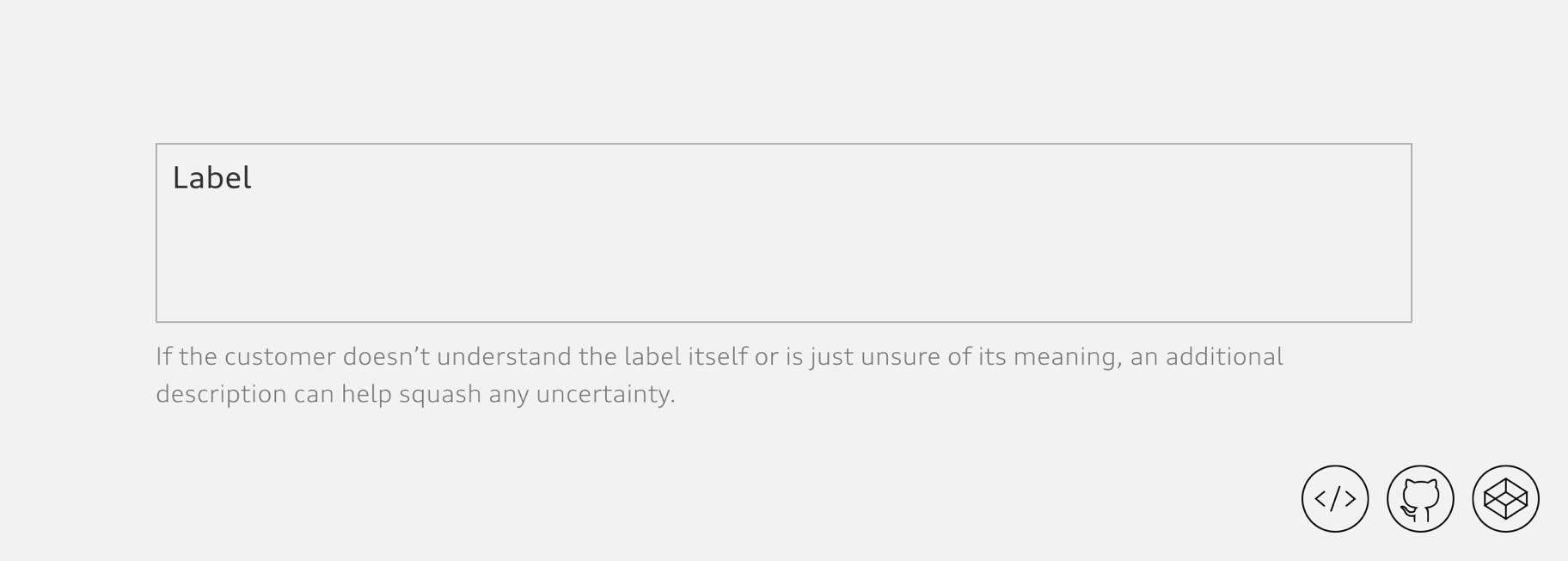 多行文本栏可以容纳任何数量的文本,并且随着用户的输入逐渐变大变高以适应输入的文本。如果有必要,文本数量可以限制在特定的最大的字符数,并通过倒计时的方式显示。与其他文本栏不同的是,标签和输入文本出现在一个精细绘制的框架中。